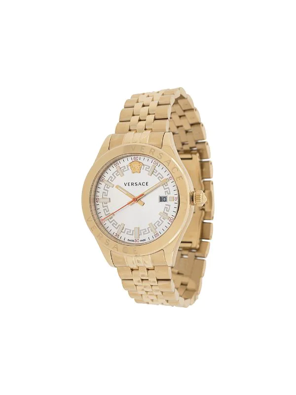 Boîtier rond, mouvement à quartz, fermoir déployant, bracelet à maillons ajustable. Matière : acier inoxydable.