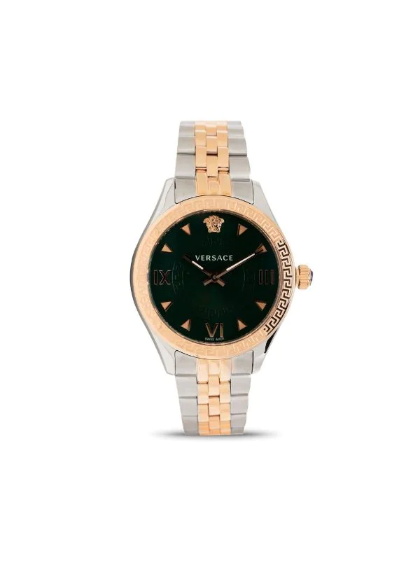 Vert, acier inoxydable, boîtier rond, mouvement à quartz, bracelet à maillons ajustable, fermeture à loquet, motif Medusa, détail Greca signature, cadran à chiffres romains, aiguilles bâton, couronne vissée. Cet article bénéficie d’un an de garantie standard proposé par la boutique partenaire.