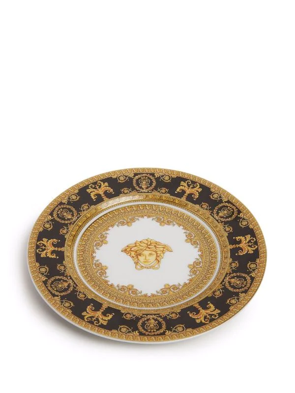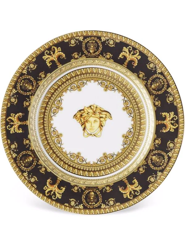 Motif Medusa, motif baroque, coins incurvés. Couleur : blanc.