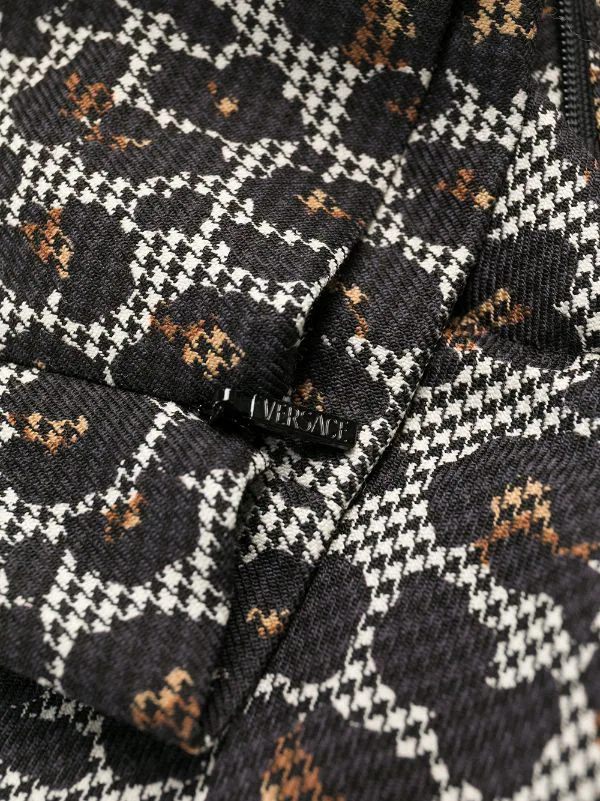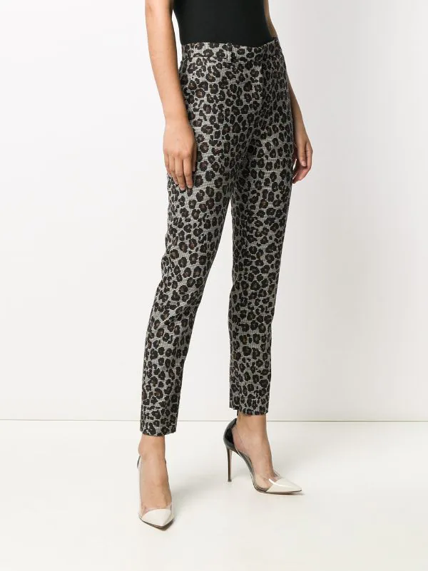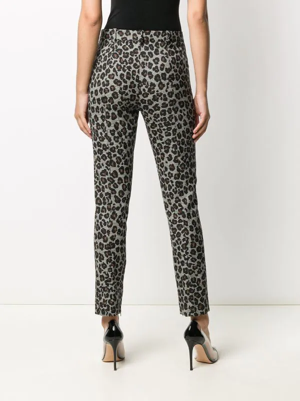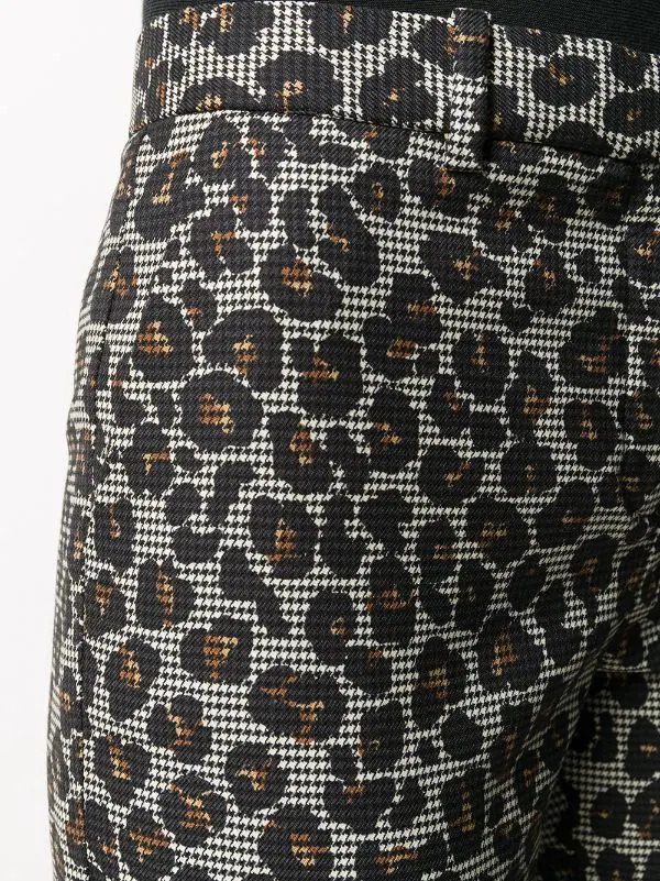Pantalon droit à imprimé léopard en laine vierge Versace avec coupe droite, design ajusté et imprimé léopard. Couleur : gris.