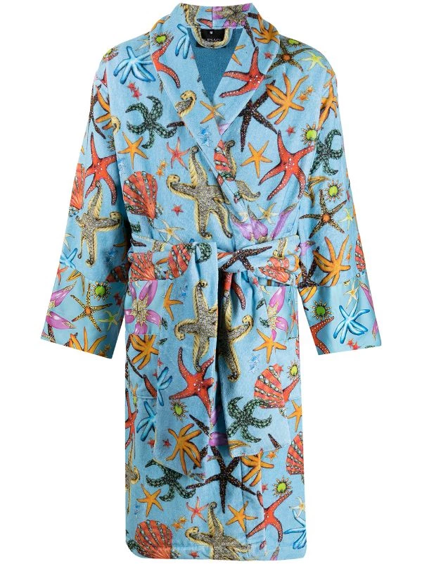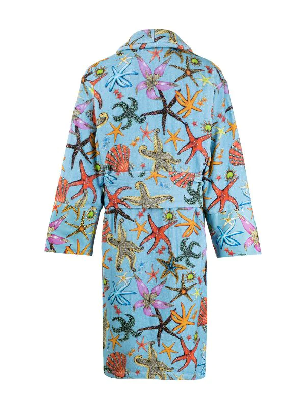 Fini éponge, imprimé graphique, manches longues, taille ceinturée, deux poches plaquées avant. Matière : coton. Lorsque vous passez commande, veillez à prendre en compte que les mensurations indiquées pour cet article unisexe correspondent à la taille homme.