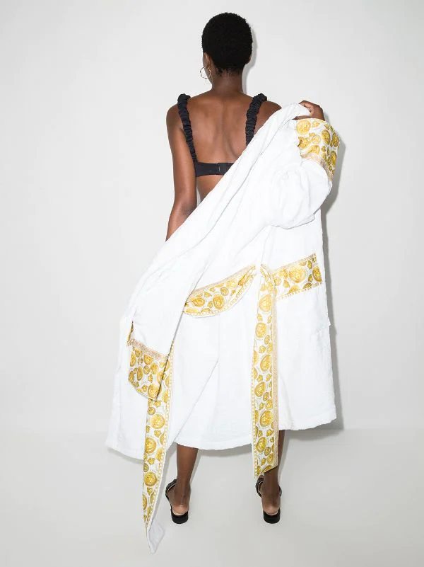 Motif Medusa, taille ceinturée, manches longues. Couleur : blanc. Matière : coton.