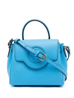 Détail Medusa, coutures ton sur ton, anse arrondie, bouton pression magnétique, bride porté épaule ajustable, anse à maillons de chaîne. Matière : cuir.