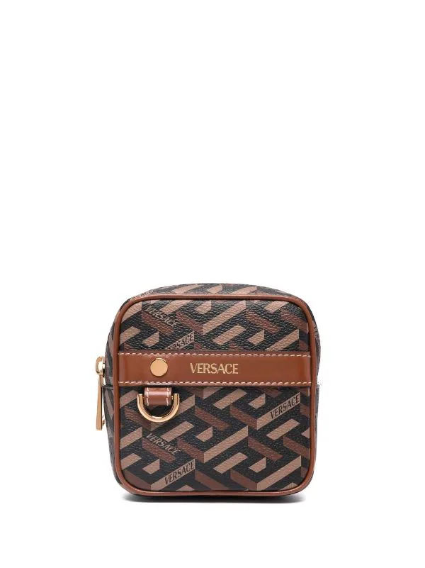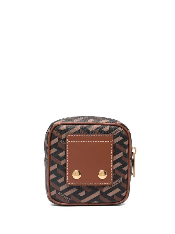 Imprimé monogrammé, finitions en métal doré, attache porte-clés, fermeture zippée sur le dessus, patch logo intérieur. Couleur : marron.