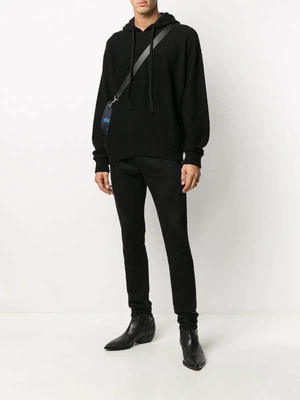 Capuche classique, lien de resserrage, manches longues, manches à poignets resserrés. Couleur : noir.