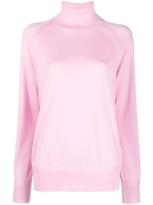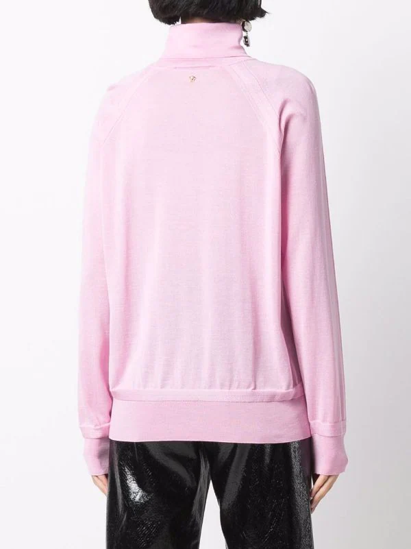 Col roulé, détail Medusa, manches longues. Couleur : rose.