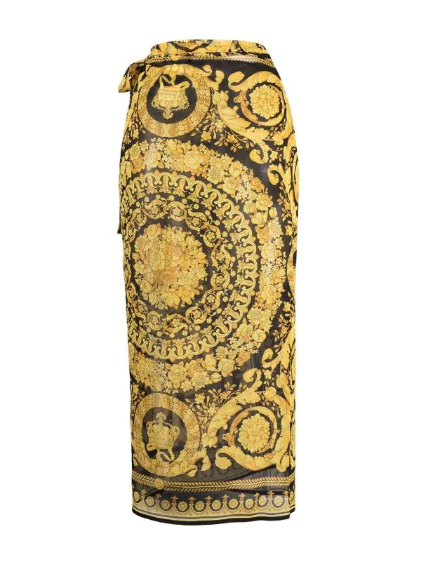 Motif baroque, fermeture à nouer sur les côtés. Matière : soie.