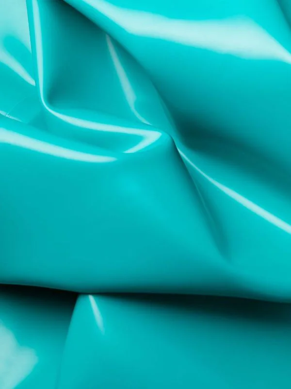 Turquoise, détail Medusa, bretelles fines ajustables, encolure style bustier, fermeture zippée à l’arrière, coupe mi-longue. Veuillez noter que nous n’acceptons pas les retours pour les articles en latex.
