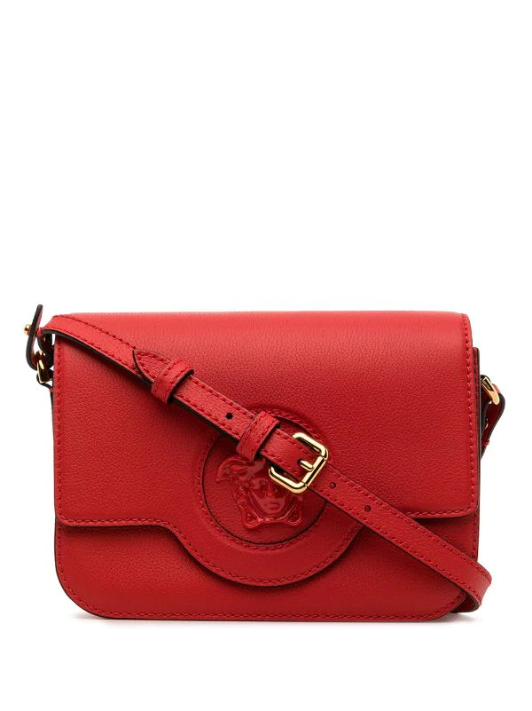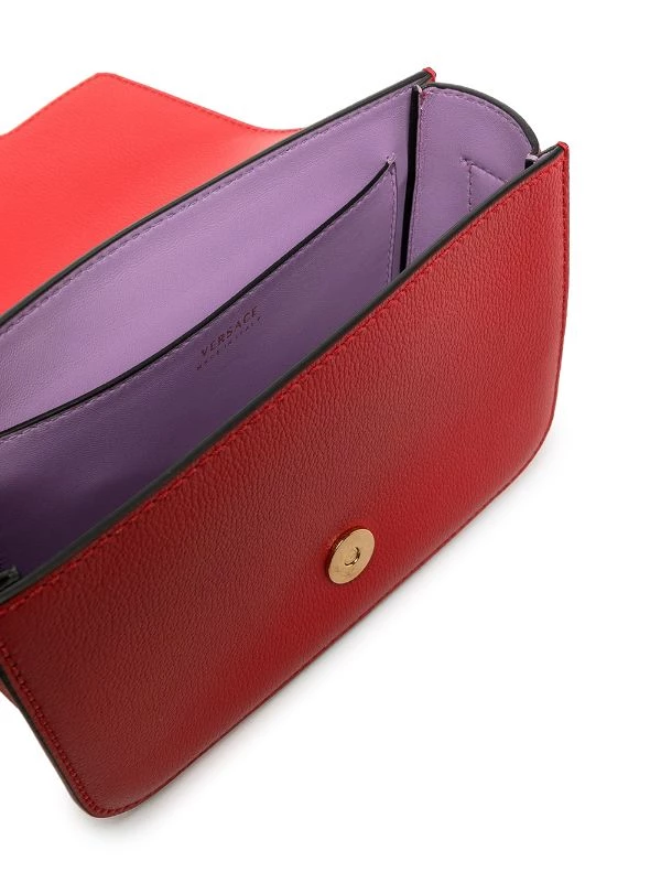 Motif Medusa, logo doré, finitions en métal doré, rabat sur le dessus, fermeture boutonnée, bride porté épaule ajustable, compartiment principal, poche intérieure plaquée.