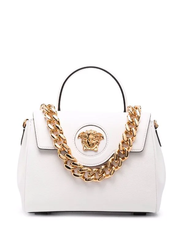 Motif Medusa, anse classique, bretelle portée épaule unique, compartiment principal. Matière : peau d’agneau.