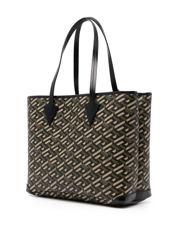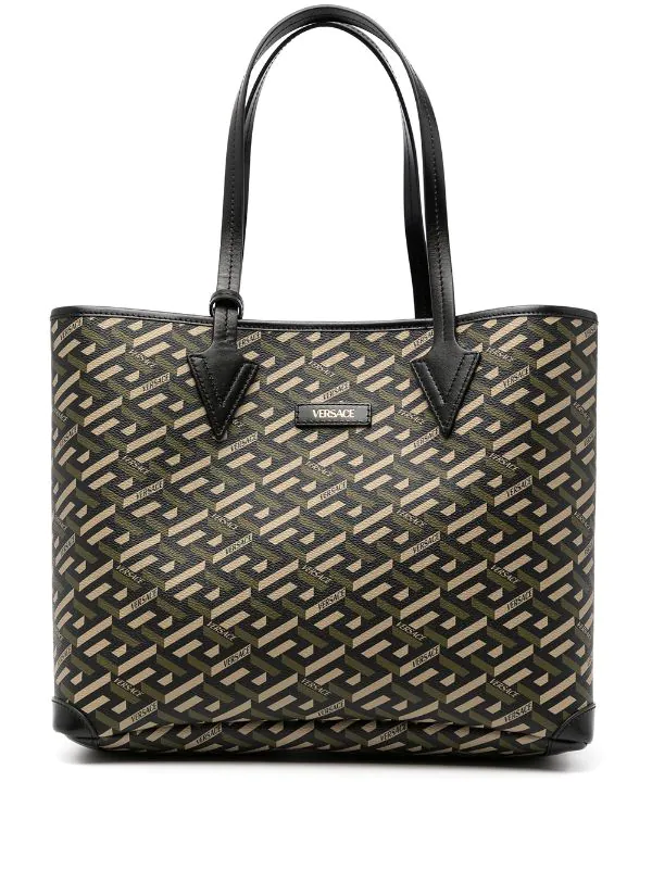 Imprimé La Greca signature, patch logo sur le devant, anses sur le dessus, ouverture sur le dessus, pochette détachable. Matière : cuir.