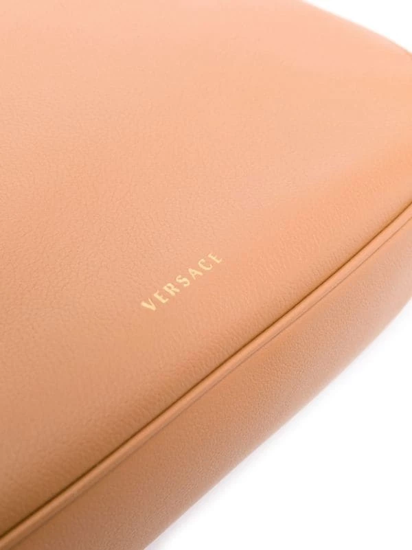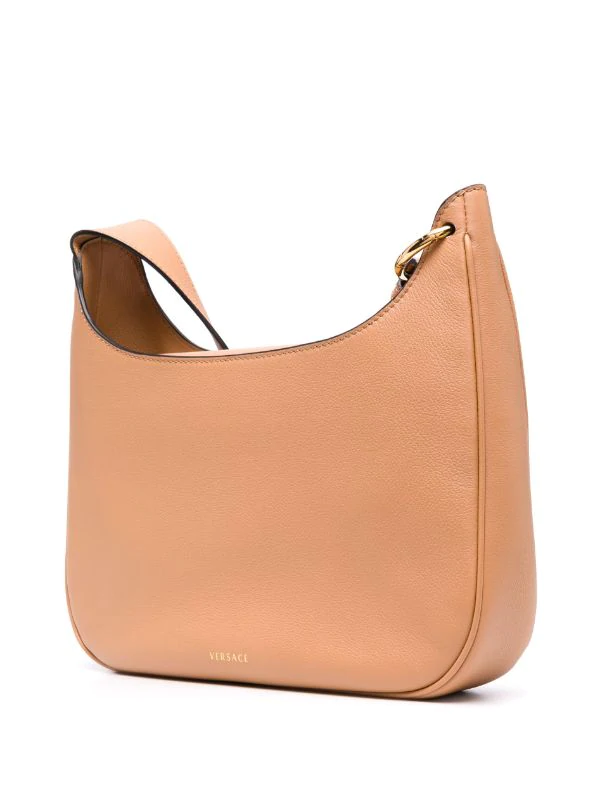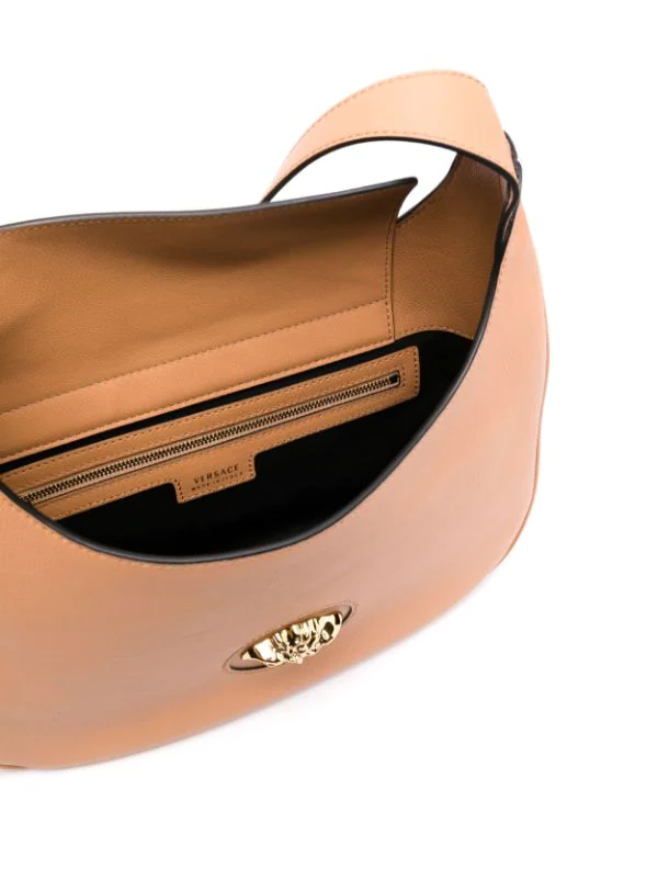 Bride porté épaule ajustable, détail Medusa, poche intérieure zippée, doublure intégrale. Couleur : marron.