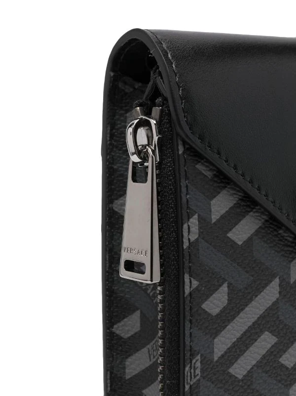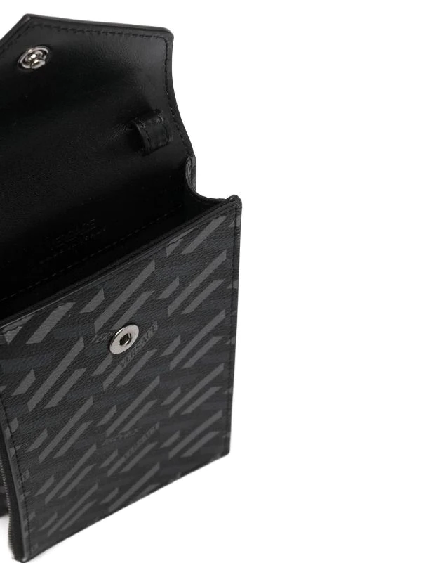 Imprimé monogrammé, rabat sur le dessus, fermoir emboitant, fermeture zippée sur le côté, bretelle portée épaule unique, compartiment principal.