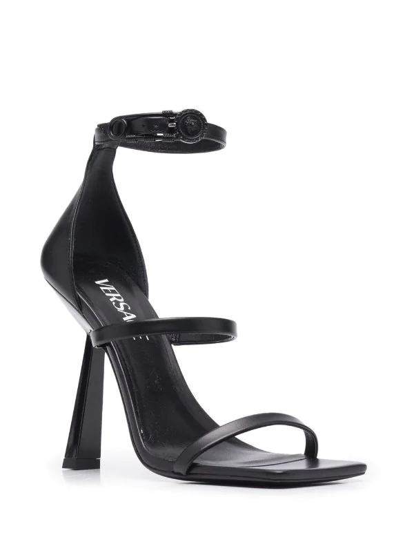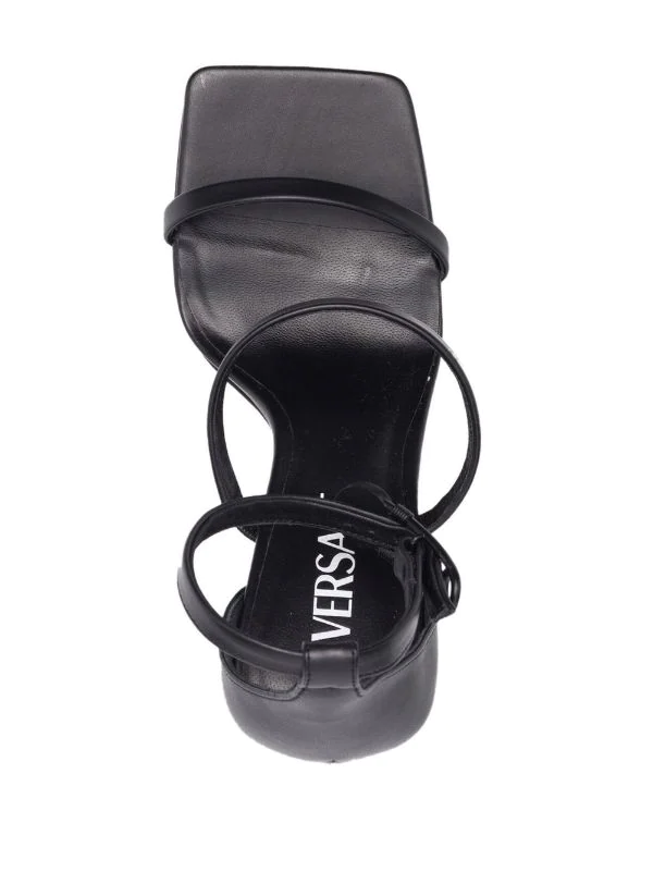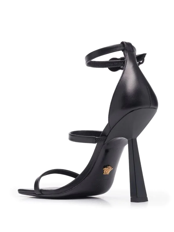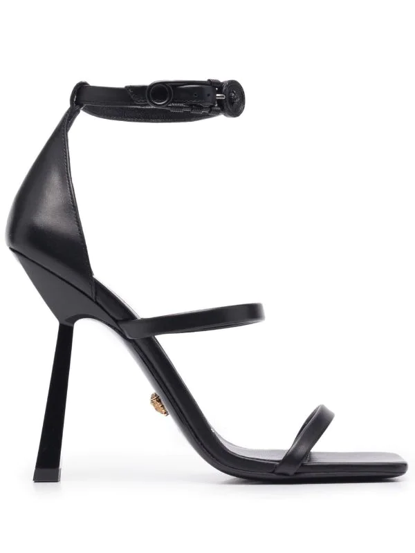 Cuir, noir, bout ouvert, bride cheville à boucle, talon haut.