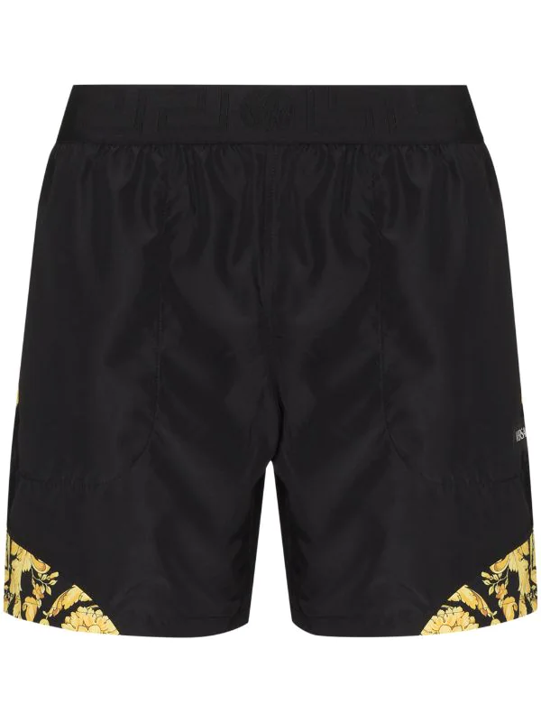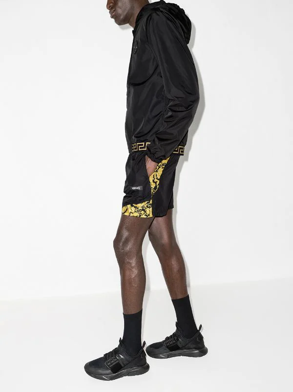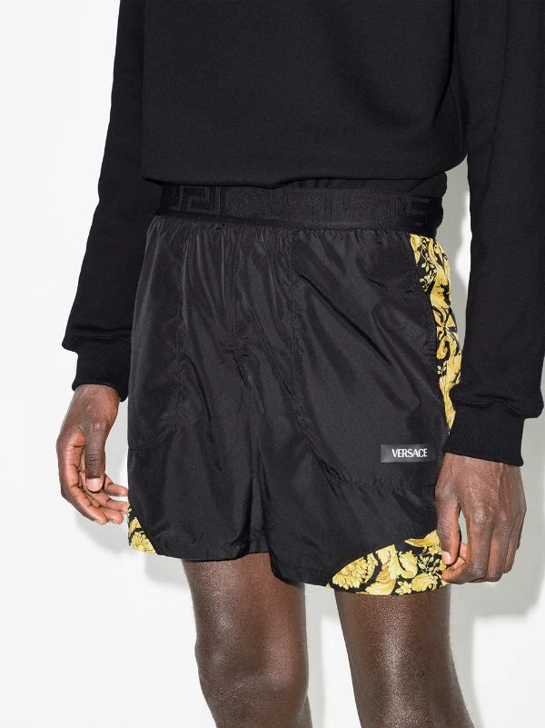 Imprimé Barocco signature, design à empiècements, ceinture élastique, deux poches latérales fendues.