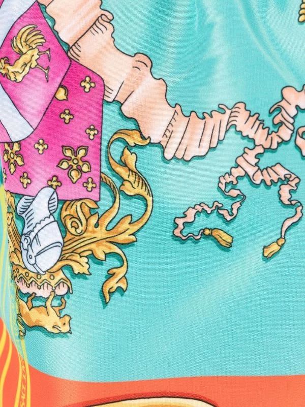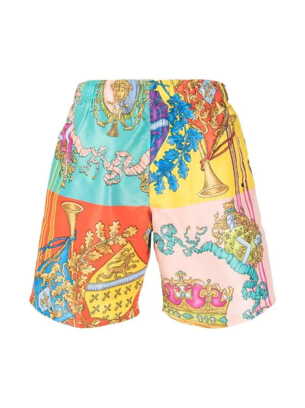 Multicolore, motif baroque, lien de resserrage à la taille, coupe droite, longueur au dessus du genou. Veillez à essayer les maillot de bain par-dessus vos propres sous-vêtements.
