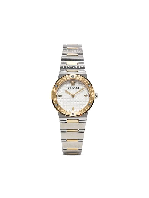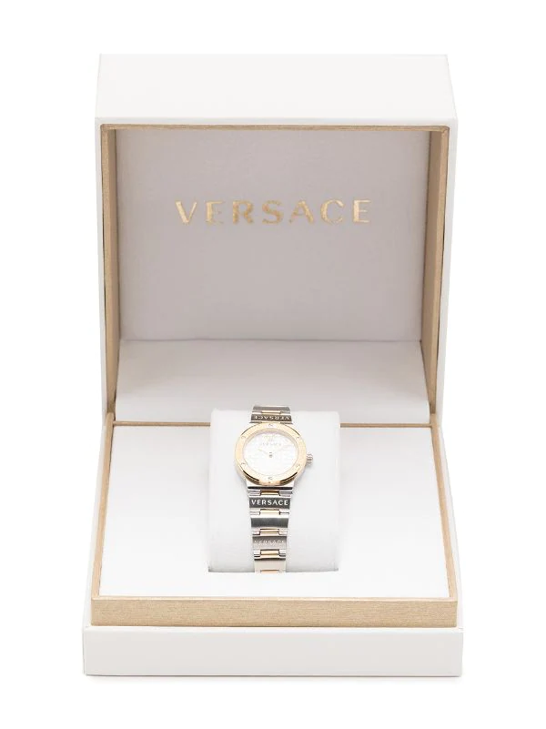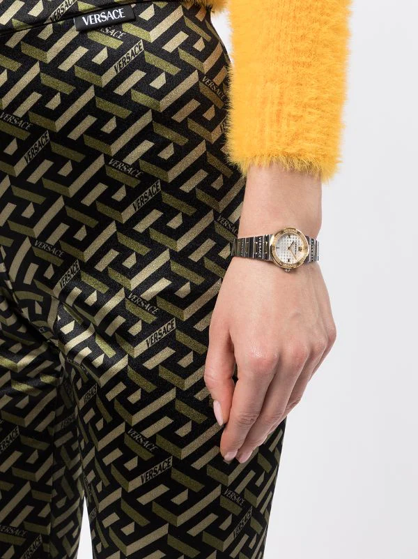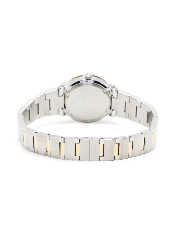 Boîtier rond, détail Greca signature, motif Medusa, mouvement à quartz, bracelet à maillons ajustable, fermeture à loquet, aiguilles index, couronne vissée. Matière : acier inoxydable. Cet article bénéficie de deux ans de garantie standard proposés par la marque.