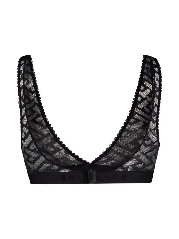 Imprimé La Greca signature, empiècements en tulle, bonnets triangles, construction stretch, fermeture cliquet à l’arrière. Couleur : noir. N’oubliez pas : cet article doit être essayé par-dessus vos propres vêtements.