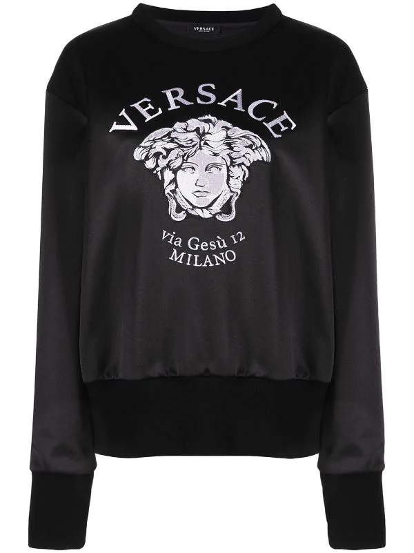 Motif Medusa, encolure ras du cou, manches longues, ourlet nervuré, poignets nervurés, fini brillant. Matière : coton mélangé.