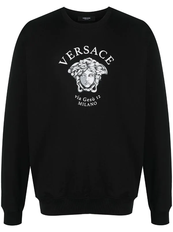 Motif Medusa, encolure ras du cou, manches longues. Couleur : noir. Matière : coton.
