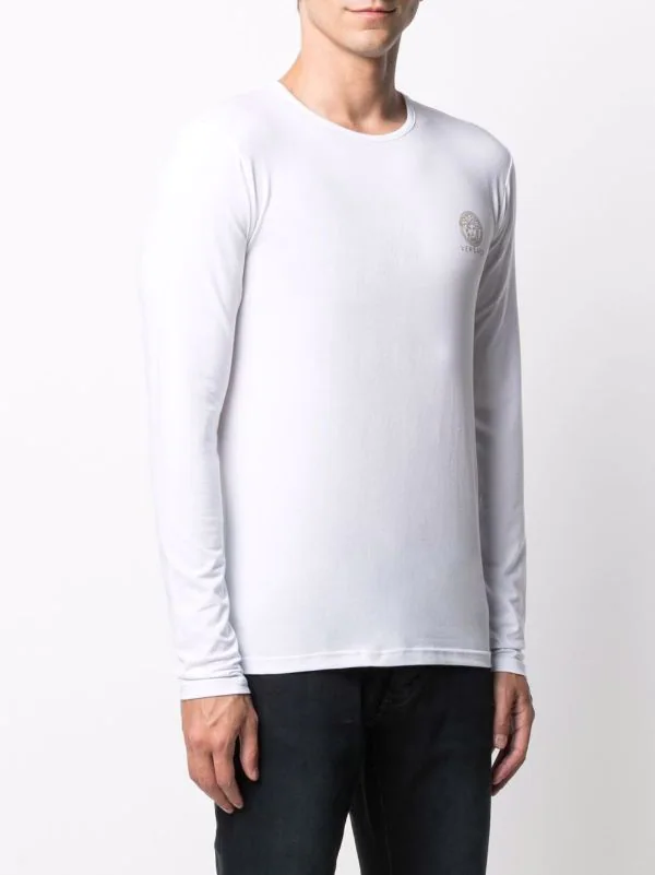 Motif Medusa, encolure ronde, manches longues, ourlet droit. Couleur : blanc.
