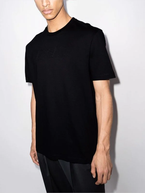 Logo embossé sur le devant, encolure ronde, manches courtes, ourlet droit. Couleur : noir. Matière : coton.