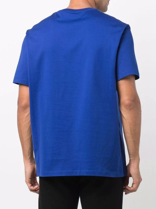 Logo imprimé sur le devant, motif Greca signature imprimé, encolure ronde, manches courtes, ourlet droit. Couleur : bleu. Matière : coton.