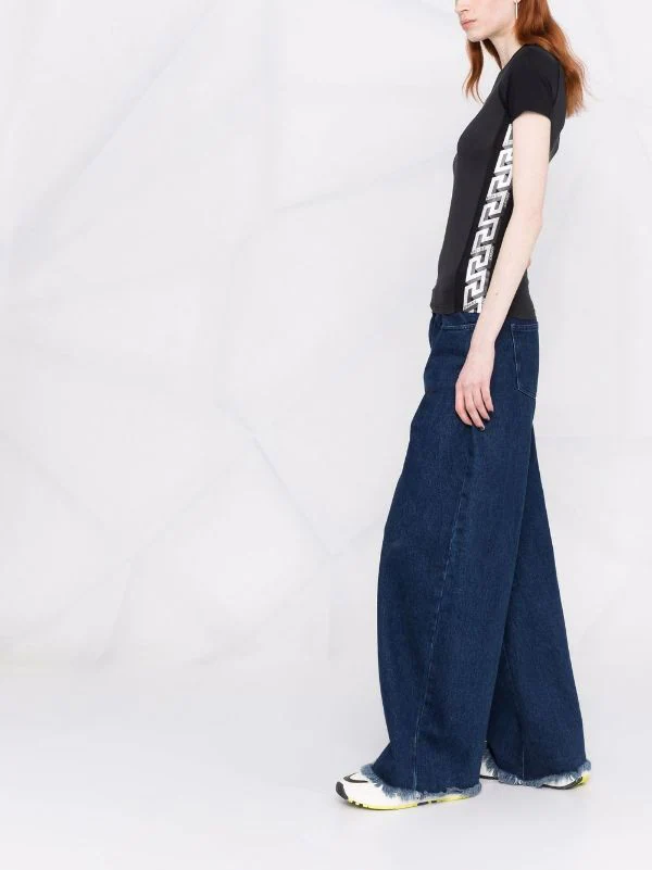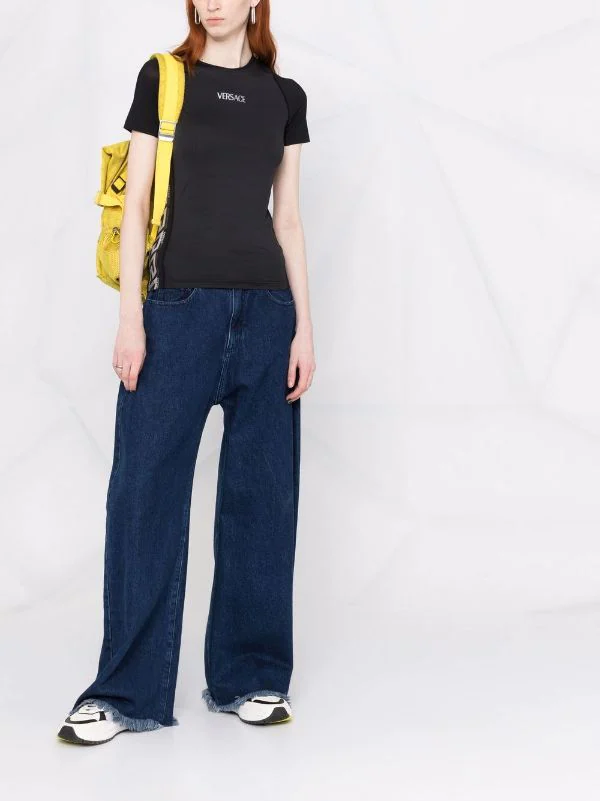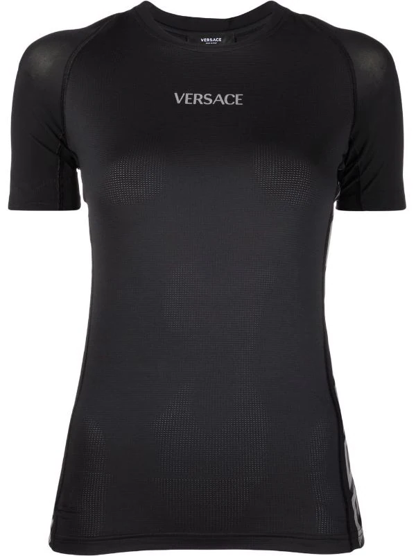 Imprimé La Greca signature, logo imprimé à la poitrine, construction stretch, manches courtes, encolure ronde. Couleur : noir.