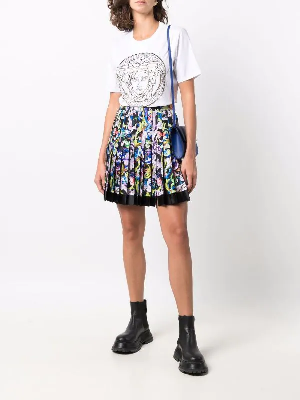 Motif Medusa, encolure ronde, manches courtes, ourlet droit. Couleur : blanc. Matière : coton.