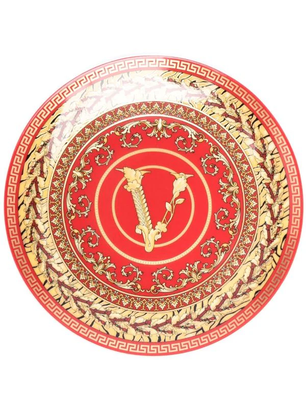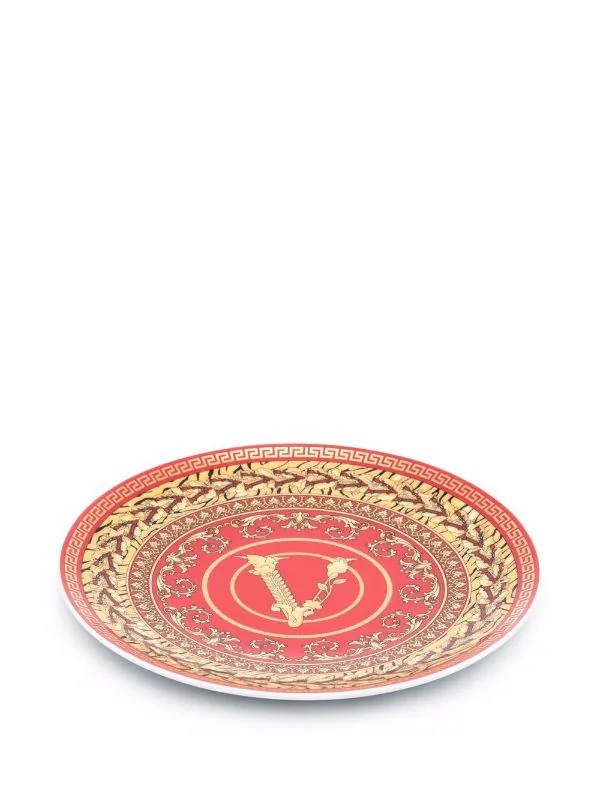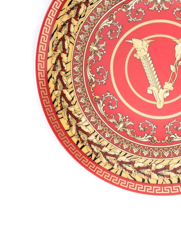 Design circulaire, détail Greca signature, motif Medusa, imprimé Barocco signature, lavable en lave-vaisselle. MatiÚre : céramique.