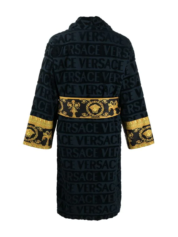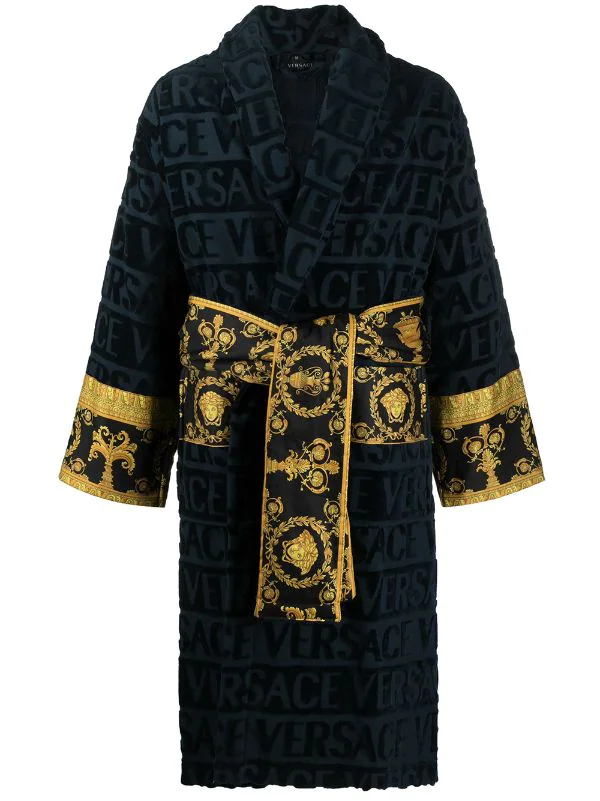 Imprimé monogrammé, imprimé Barocco signature, col châle, manches longues, taille nouée. Matière : coton.