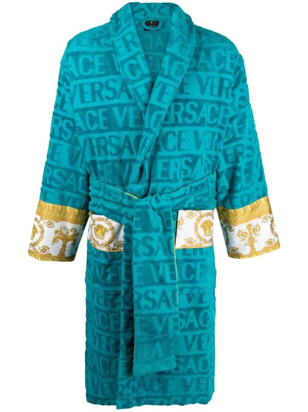 Fini éponge, rayures horizontales, motif monogrammé embossé, bordure contrastante, col châle, manches longues, taille ceinturée, deux poches passepoilées avant. Matière : coton. Lorsque vous passez commande, veillez à prendre en compte que les mensurations indiquées pour cet article unisexe correspondent à la taille homme.