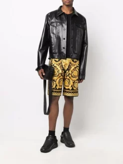 ( Nouvelle Collection ) Versace 5B530 NERO + CANDY Short De Cyclisme à Imprimé Greca Signature Femme