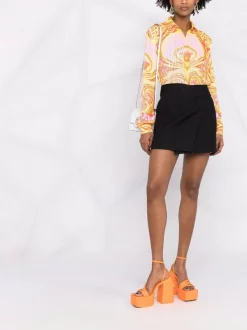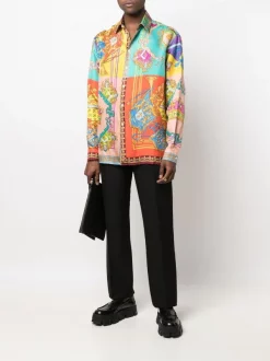 ( Nouvelle Collection ) Versace Chemise En Soie à Imprimé Medusa Music 5R010 ORANGE MULTICOLOR