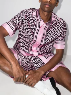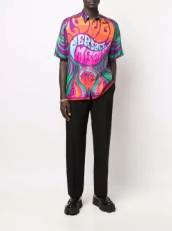 ( Nouvelle Collection ) Versace Chemise Medusa Music à Logo Imprimé 5Y100 PINEAPPLE+NEON ORANGE