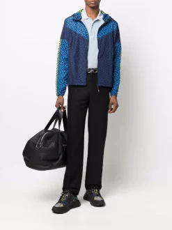 ( Nouvelle Collection ) Versace 2B100 BLACK LIGHT BLUE Veste En Polaire à Imprimé Graphique Homme