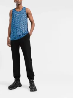 ( Nouvelle Collection ) Versace 6U700 BLUE Débardeur à Imprimé La Greca Homme
