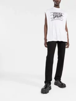 ( Nouvelle Collection ) Versace T-shirt à Slogan Imprimé Homme