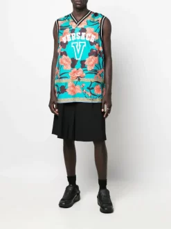 ( Nouvelle Collection ) Versace Haut à Fleurs 5V230 TURQUOISE+PRINT
