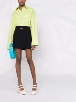 ( Nouvelle Collection ) Versace 1B000 BLACK Jupe Portefeuille En Laine à Effet Enduit Femme