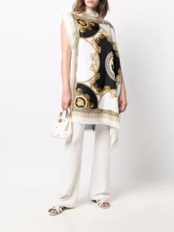 ( Nouvelle Collection ) Versace Caftan Imprimé Greca Sans Manches 5W170 WHITE + GOLD + BLACK