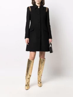 ( Nouvelle Collection ) Versace 1B000 BLACK Manteau évasé En Laine à Détails De Chaînes Femme