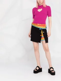 ( Nouvelle Collection ) Versace 1B000 BLACK Minijupe En Tweed à Détail De Chaîne Femme