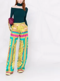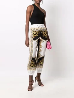 ( Nouvelle Collection ) Versace 1D310 PINK Pantalon Droit à Taille Haute Femme