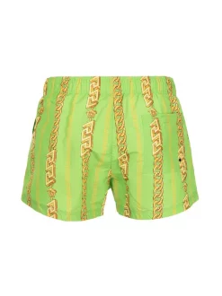 ( Nouvelle Collection ) Versace 2G530 NEON GREEN GOLD Short De Bain à Bande Grecca Homme