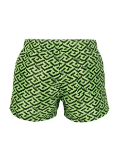 ( Nouvelle Collection ) Versace 5G110 NEON GREEN+ BLACK Short De Bain à Imprimé Greca Homme