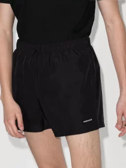 ( Access Edit ) Versace 1B000 BLACK Short De Bain Greca à Logo Imprimé Homme