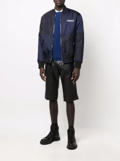 ( Nouvelle Collection ) Versace 5U040 NAVY Veste Bomber à Motif La Greca Signature Homme