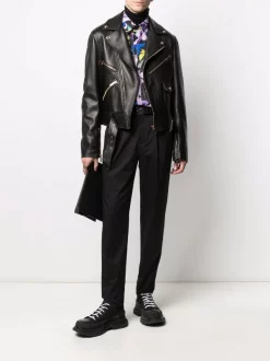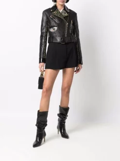 Versace 1B000 BLACK Veste De Moto Crop à Doublure Logo Femme