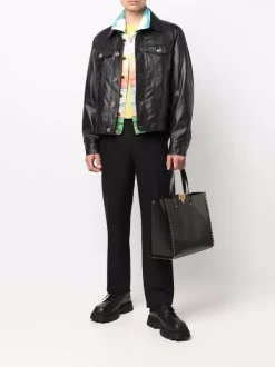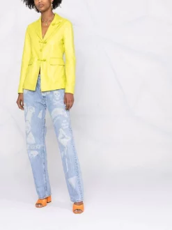 ( Nouvelle Collection ) Versace Veste En Cuir à Détail Medusa Safety Pin 1GB00 CITRON